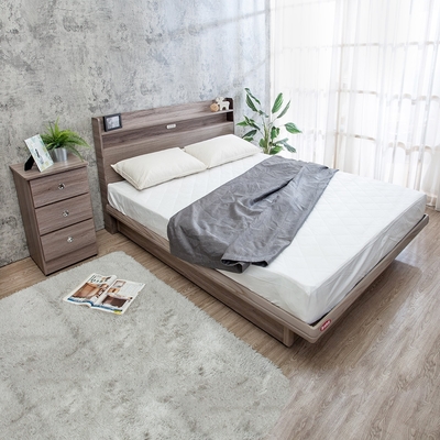 Boden-米恩5尺雙人後掀床房間組-3件組-附插座床頭片+尾掀床底+三抽床頭櫃(古橡色-七色可選-不含床墊)$10,09165折