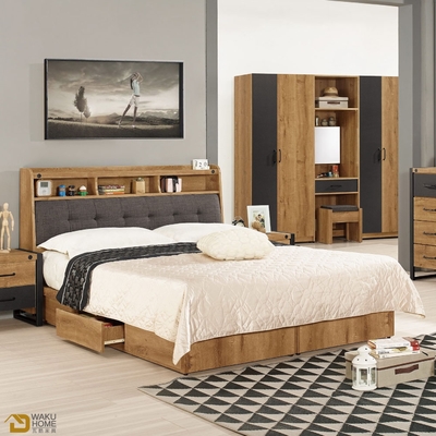 WAKUHOME 瓦酷家具 Lyon 6尺雙人床四抽收納床組 寬182×深218X高110cm