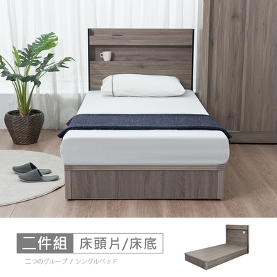 WAKUHOME瓦酷家具Winni北歐風3.5尺功能型單人床-床頭+床底寬106*深188*高76.5(cm)