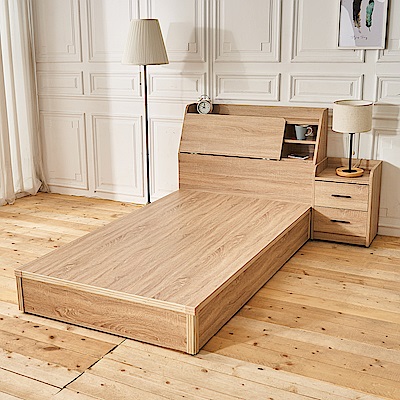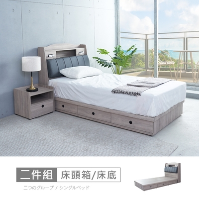 直人木業-DORIS現代風收納側兩抽床組搭配床邊櫃(附USB插座)-單人加大3.5尺