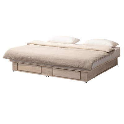 WAKUHOME 瓦酷家具Sunrice自然日系淺灰橡6尺雙人床組(床頭箱+床底)-寬185*深221*高112cm