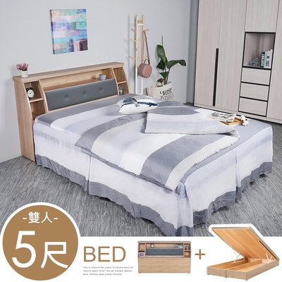 Homelike 喜家居雙人5尺收納掀床組(雪松色)(2284)-155x226x93cm