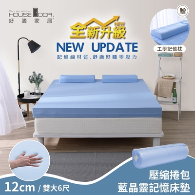 【House Door 好適家居】全新升級紓壓抗塌陷 12cm厚藍晶靈釋壓記憶床墊好眠組(壓縮捲包出貨)-雙大6尺$3,612$3,712