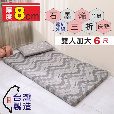 BuyJM 台灣製雙人加大6尺石墨烯竹炭紗三折床墊/學生床墊(厚8公分)$4,74083折