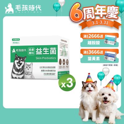 【毛孩時代】皮膚專科益生菌x3盒(貓狗益生菌 貓狗皮膚保健)