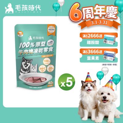 【毛孩時代】100%原型牛肉塊凍乾零食40gx5包(關節保健/犬貓凍乾/犬貓零食/貓咪凍乾/貓咪零食)