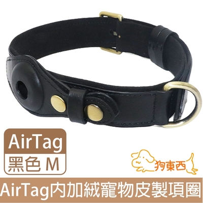 【DOG狗東西】皮革AirTag追蹤器寵物項圈 內加絨貓狗皮製項圈 黑 M$42484折