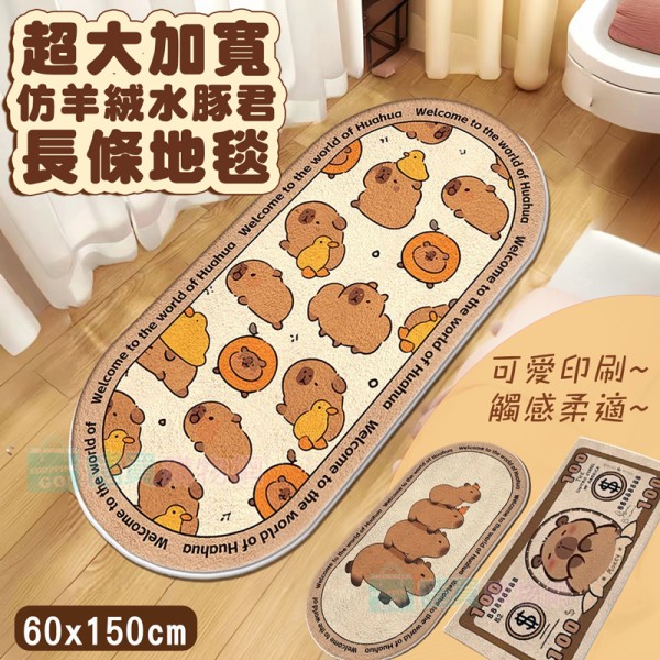 超大加寬 仿羊絨水豚君長條地毯(60X160cm) 床邊地毯 飄窗地墊 毛絨地墊 臥室兒童房 皮卡巴拉