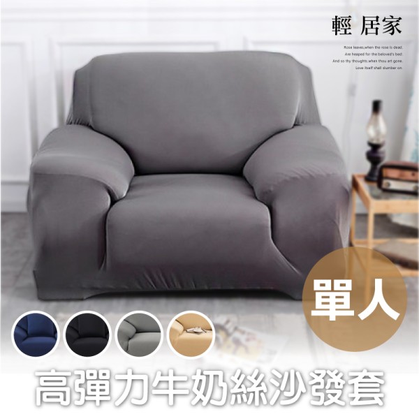 高彈力牛奶絲沙發套-單人 簡約素色彈性沙發罩 彈力通用沙發套罩 全包防滑沙發套-輕居家8391