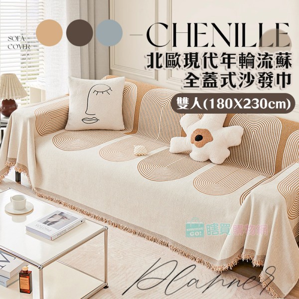 商店北歐現代年輪流蘇全蓋式沙發巾(雙人座) 沙發墊 沙發套 大方巾 蓋毯 防髒污