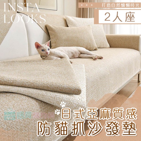 商店日式亞麻質感防貓抓沙發墊(2人座) 侘寂風 沙發套 沙發巾 四季通用 保護墊 防髒汙