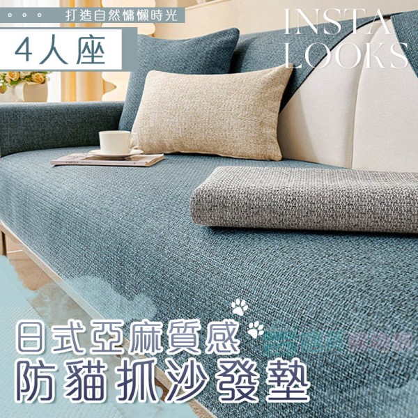 商店日式亞麻質感防貓抓沙發墊(4人座) 侘寂風 沙發套 沙發巾 四季通用 保護墊 防髒汙