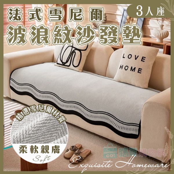 商店法式雪尼爾波浪紋沙發墊(3人座) 防滑沙發套 防貓抓 沙發巾 四季通用 保護墊 防髒汙