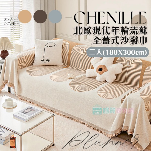商店北歐現代年輪流蘇全蓋式沙發巾(三人座) 沙發墊 沙發套 大方巾 蓋毯 防髒污