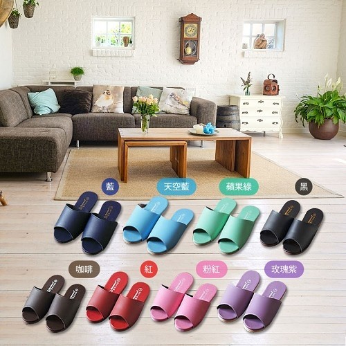 (e鞋院)台灣製馬卡龍居家室內皮拖鞋