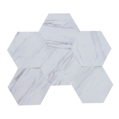 樂嫚妮 六角石紋牆壁貼紙-白大理石-20X23cmX10片-防水即撕即貼