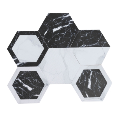 樂嫚妮 六角石紋牆壁貼紙-黑白大理石-20X23cmX10片-防水即撕即貼