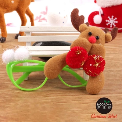摩達客耶誕-聖誕派對造型眼鏡-綠框麋鹿(本島免運費)