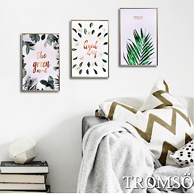 TROMSO 北歐生活版畫有框畫-金采綠葉WA92(三幅一組)