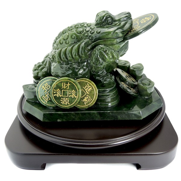 商店【吉祥開運坊】蟾蜍系列【招財 精緻款青玉石蟾蜍 特大 含台製實木旋轉底座】開光 擇日