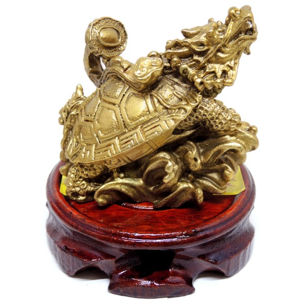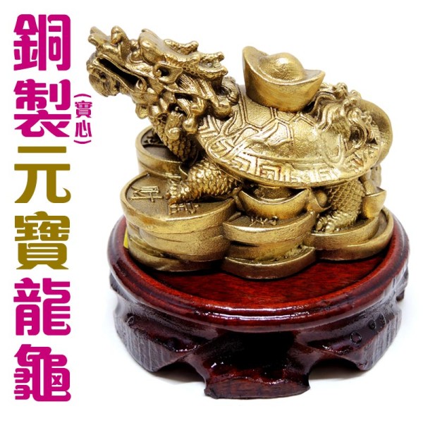商店【吉祥開運坊】龍龜系列【招財 防小人 銅鍍金龍龜 大型 附實木座】開光加持 擇日