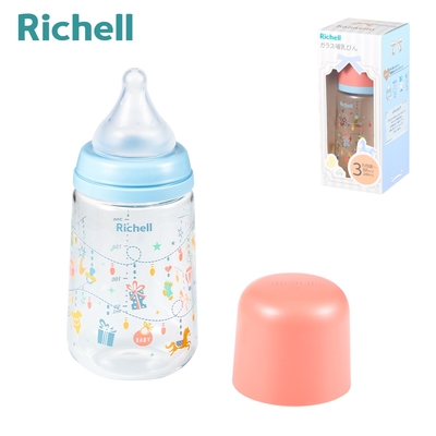 【Richell 利其爾】HE初心系列- 玻璃寬口哺乳奶瓶 240mL 樂繽紛
