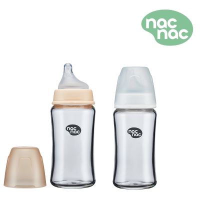 【nac nac】妍心35%晶透防脹氣玻璃寬口奶瓶240ml(雲白色/淡奶茶/新生兒適用)