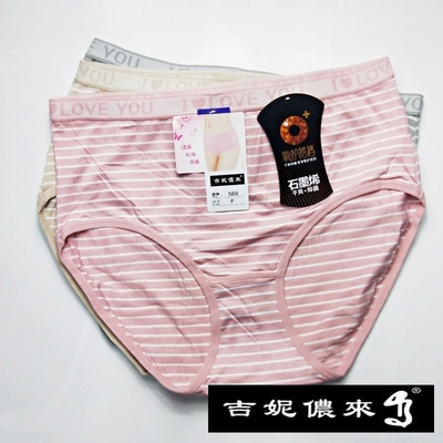 吉妮儂來 12件組舒適中腰 加大條紋平口棉褲 (隨機取色)566