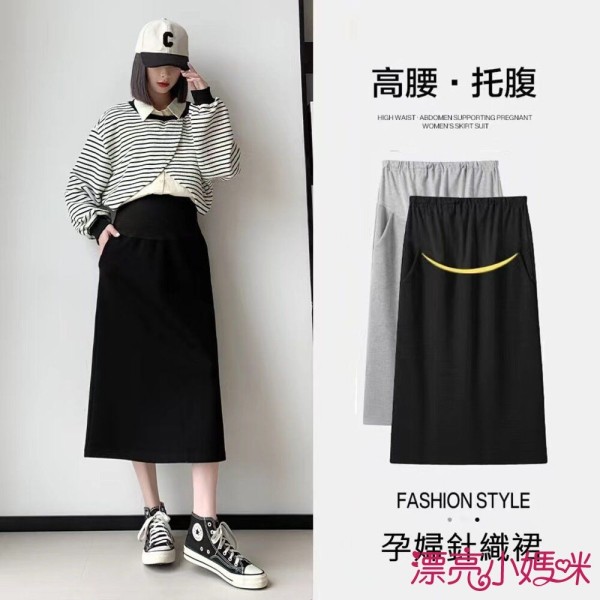 漂亮小媽咪 【S3903】 秋冬 A字 包臀裙 高腰 開叉 長裙 托腹 孕婦 實拍 半身裙
