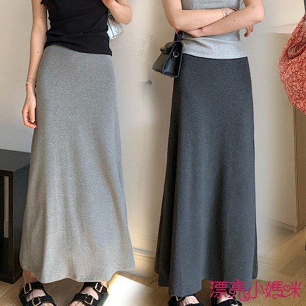 漂亮小媽咪 【S8119】 夏日 包臀 魚尾 半身裙 百搭 高腰 托腹 長裙 韓系 孕婦裙