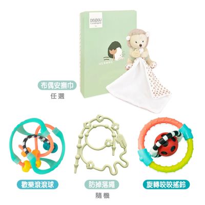 法國【Doudou】瑞奇好朋友/布偶安撫巾-盒裝+Sassy旋轉咬咬搖鈴+歡樂滾滾球+Jolly防掉落繩隨機$970$1,070