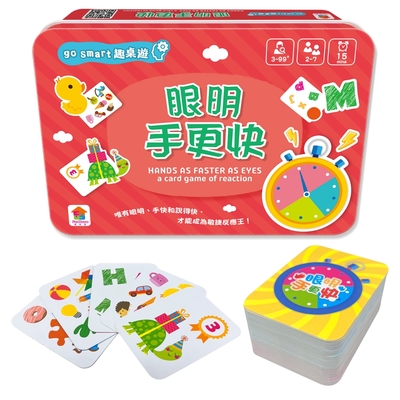 【双美】go smart趣桌遊:眼明手更快(內附91張遊戲卡牌+1張玩法說明書)-鐵盒收納$199