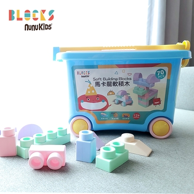 【nunuBLOCKS】益智收納馬卡龍軟積木 70pcs (贈大型推車箱)