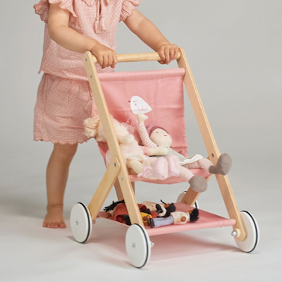 【美國 Mentari】貝比娃娃手推車(木製玩具/角色扮演/扮家家酒)