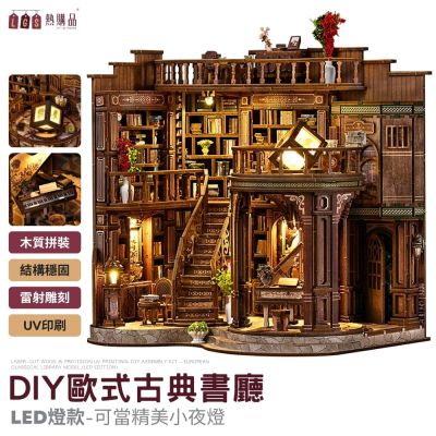 LGS 木質 歐風古典書廳模型 DIY模型 小夜燈 立體 木製 玩具 拼圖 拼裝 夜燈 益智 禮物 3D 生日禮物$1,829$1,979