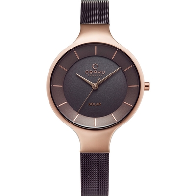 【OBAKU】丹麥都會女性光動太陽能金屬米蘭帶腕錶-咖啡金-32mm$5,48184折