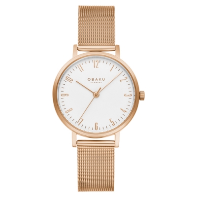 OBAKU 城市探索女錶-玫瑰金X白-V248LXVIMV-32mm