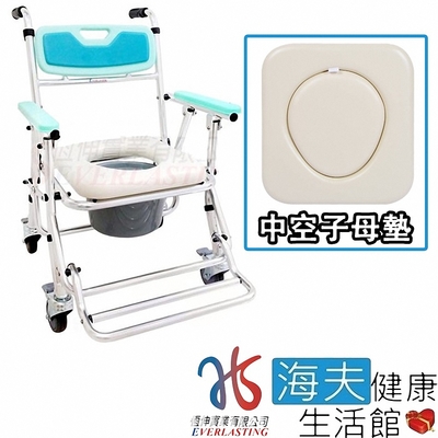 海夫健康生活館 恆伸 四輪 座位可調高低 收合衛浴椅 中空子母墊 便盆椅 洗澡椅 ER4542