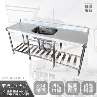 【Abis】客製商品-頂級升級加牆款304不鏽鋼180CM單洗台+平台水槽/洗手台/洗碗槽/洗衣槽/流理台(6尺)-中槽