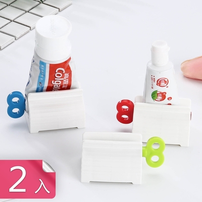 - 【荷生活】旋鈕式透明冰川紋牙膏擠壓器 可站立收納省力不浪費擠牙膏器-2入組$359活動券
