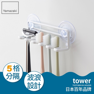 日本【YAMAZAKI】tower 吸盤式吊掛牙刷架(白)★浴室/牙刷架/置物架