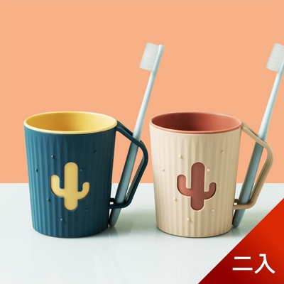 荷生活 仙人掌雙配色可放置牙刷可倒立晾乾大容量漱口杯 2入