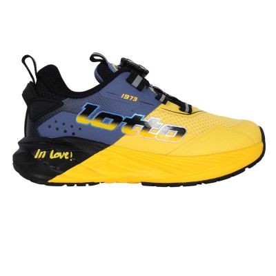 LOTTO 男中童奔速轉扣避震跑鞋-運動 童鞋 旋轉扣 反光 休閒 LT5AKR0274 黃靛藍黑