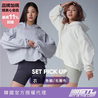 STL yoag 韓國 PickUp 魚鱗內裡 連帽 長袖上衣 帽T 柔軟 厚磅 女 運動 休閒 可調短版/MelangeWhite混淺灰$699