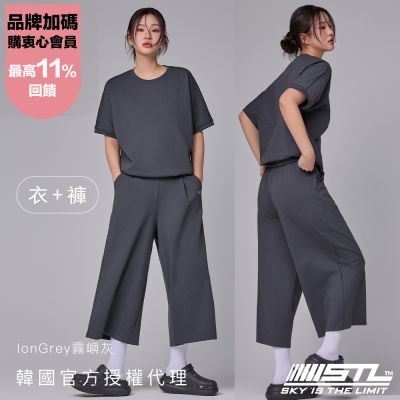 STL yoga 衣+褲 成套 韓國 女 FORTE WIDE PANTS 8 落肩寬鬆上衣+高腰前打摺直筒 8分 寬褲/IonGrey霧嶼灰$712
