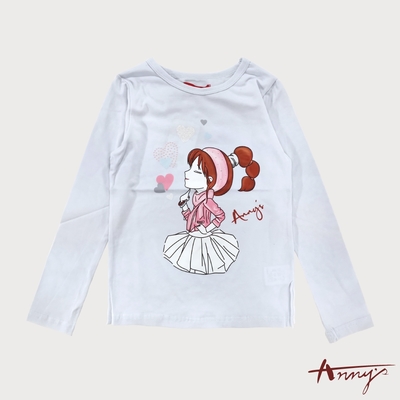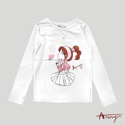 Annys安妮公主-馬尾女孩秋冬款彈性棉長袖上衣*1427白色
