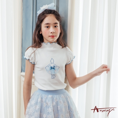Annys安妮公主-立體網紗芭蕾女孩花瓣邊秋冬款短袖上衣*1418白色