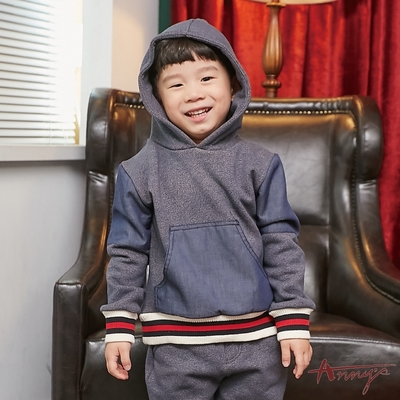 Annys安妮公主-搶眼配色鬆緊束口秋冬款男童內刷毛口袋長袖帽T*8482藍色$718