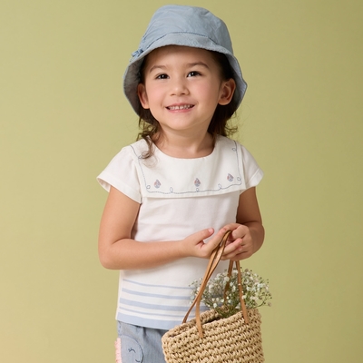 PIPPY優雅水手領小花刺繡棉質上衣 白