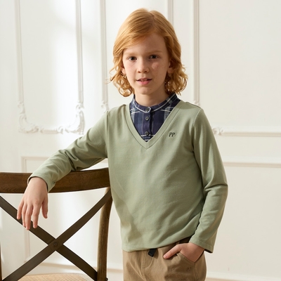 PIPPY文青風假兩件小立領長袖上衣 灰綠